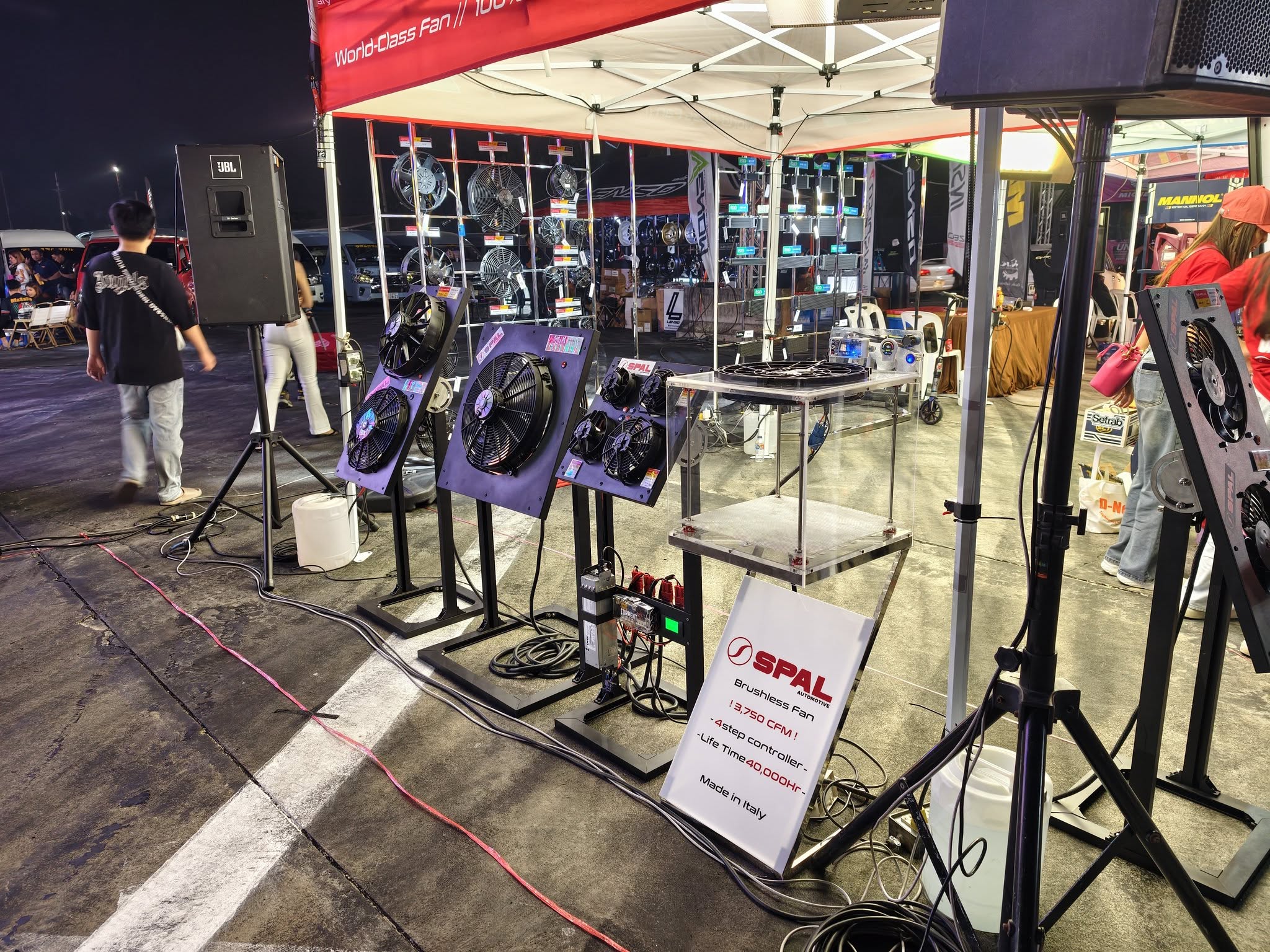 เราขนกองทัพสินค้าไปโชว์เพียบ รวมถึงแท่นทดสอบพัดลม SPAL หลายรุ่น