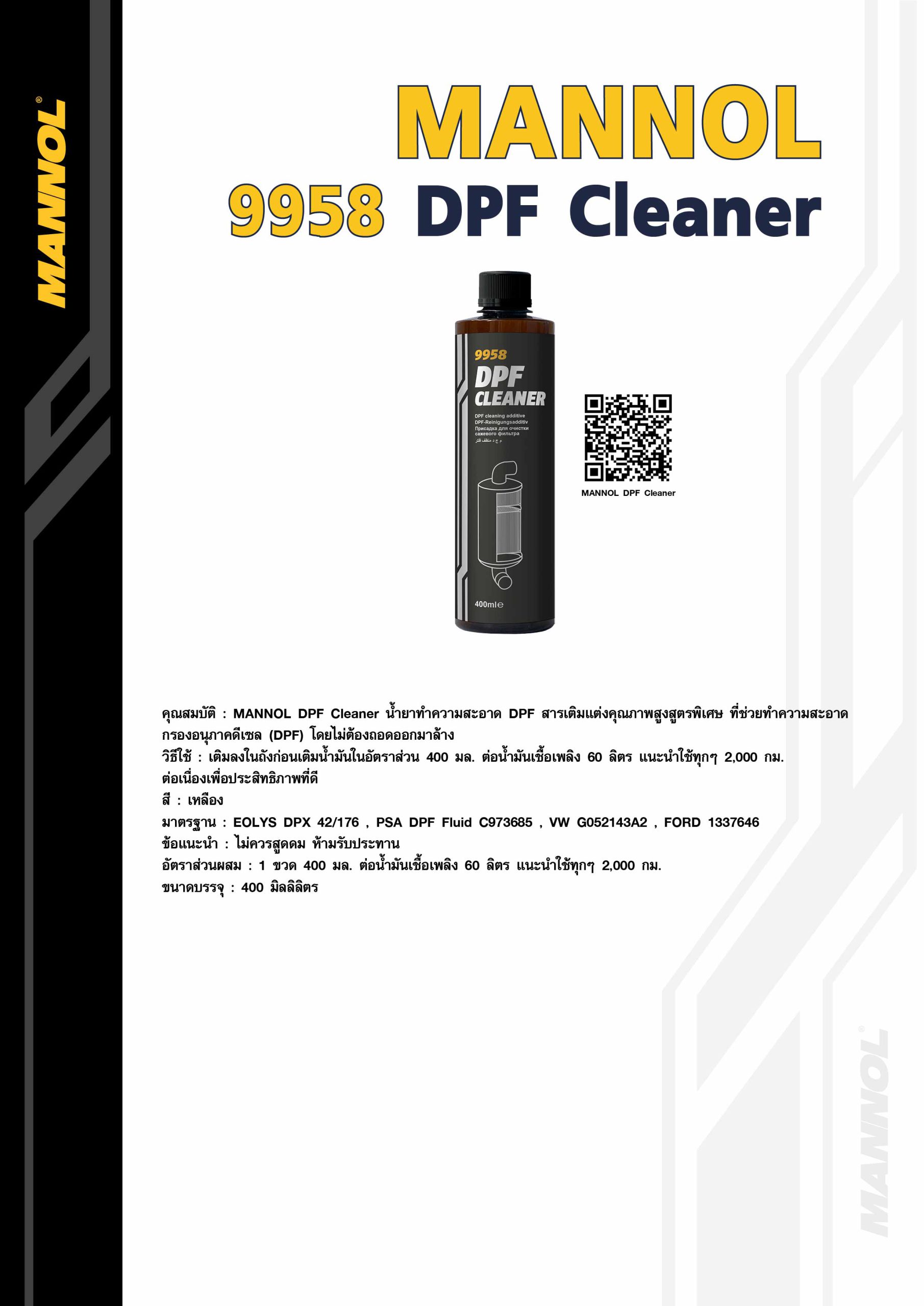 คุณสมบัติ : น้ำยาทำความสะอาด DPF สารเติมเเต่งคุณภาพสูงชนิดพิเศษ ช่วยทำความสะอาดกีองอนุภาคดีเซล (DPF)